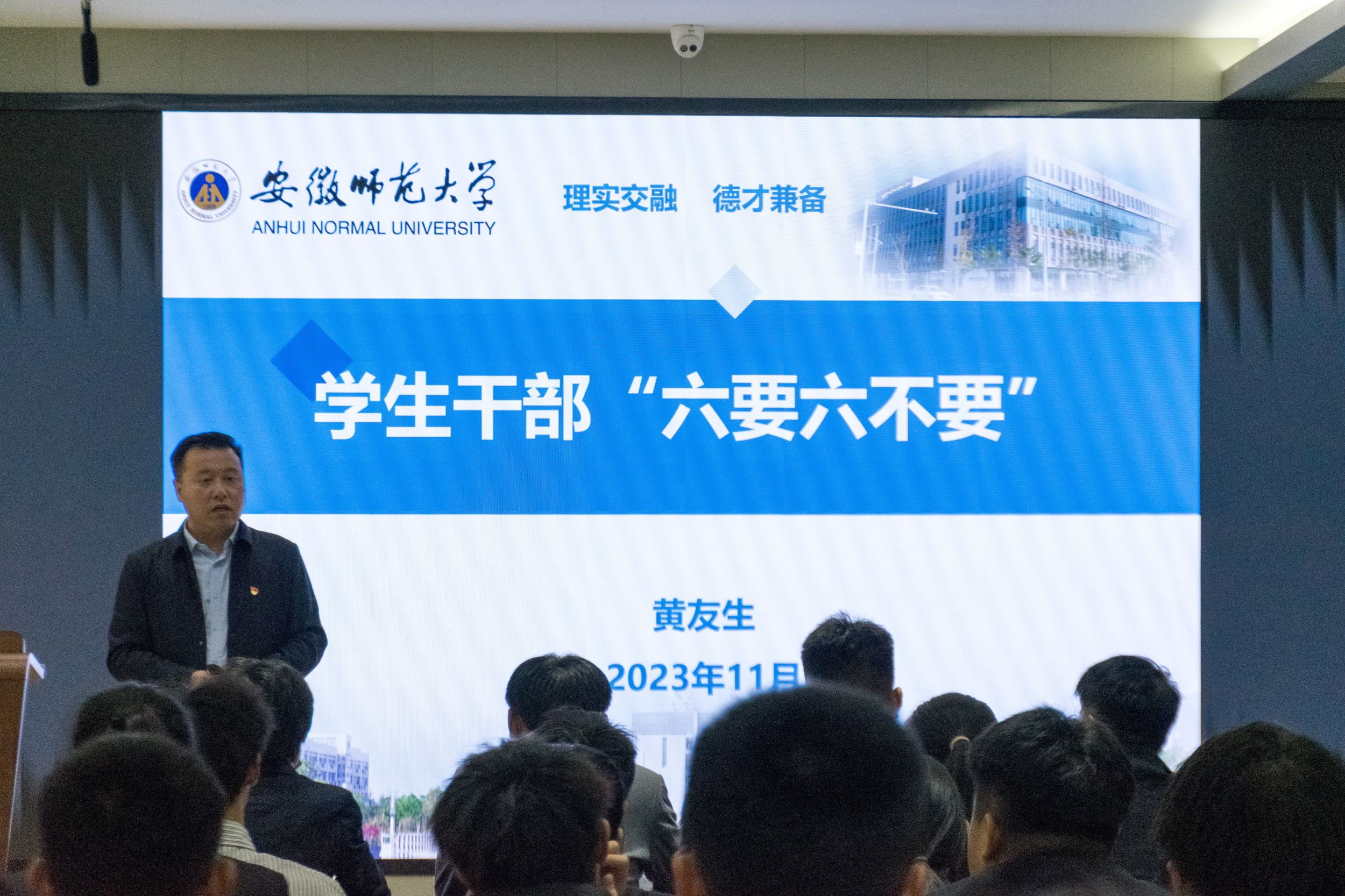 马克思主义学院教授路丙辉以“在更高处遇见更好的自己”为题,勉励学生要实事求是,不断砥砺认知力;需要勤于实践,不断增强执行力;需要立志高远,不断提升原动力。院党委副书记黄友生从学生干部的“六要六不要”切入,结合国内外形势,以高校出现典型事件为例,引导青年坚定理想信念,补足精神之“钙”。