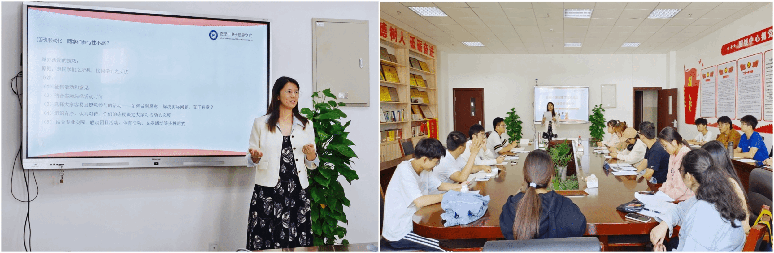 专项培训,在技能提升上逐梦向阳。学校、学院通力合作,做到平台打造和队伍建设“两手共抓”,构建心理健康教育合力。立足“物电心晴”发展辅导站,选辅导老师,完善发展辅导站值班安排,让学生在“心理暖屋”中放心诉说、轻松交流。为切实完善“心理危机”四级预防系统,打通心理健康教育班级、宿舍“最后一公里”,积极组织学生参加心理委员培训会,召开学院心理委员技能培训会,提升班级心理健康交易工作服务技能。点亮身边一盏盏心灯,强化“他助”力量,让温暖照亮一段段前进之路。