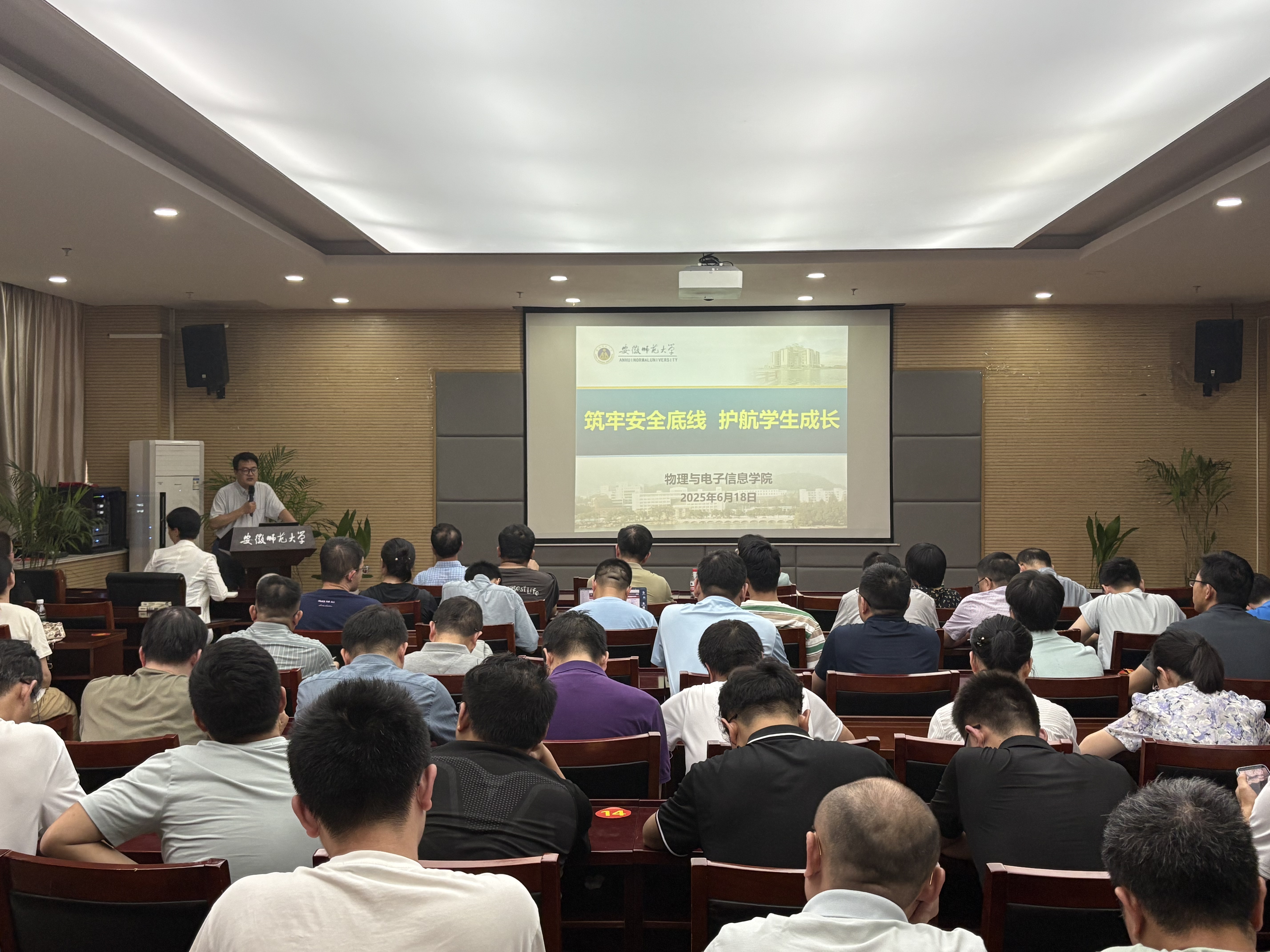 院长吕建平以《筑牢安全底线 护航学生成长》为题,就学期末及暑期学生教育管理工作提出要求,重点就学生安全和实验室安全进行了强调。教学副院长张爱清就期末考风考纪及阅卷工作进行提醒和布置。科研副院长盛晓伟就研究生宿舍搬迁及暑期留校教育管理工作做了布置。行政副院长张其芳就实验室安全和劳动纪律要求等进行了强调。宋静通报了学院2025届毕业生就业情况,请老师继续关心帮助学生就业,指导学生考研。