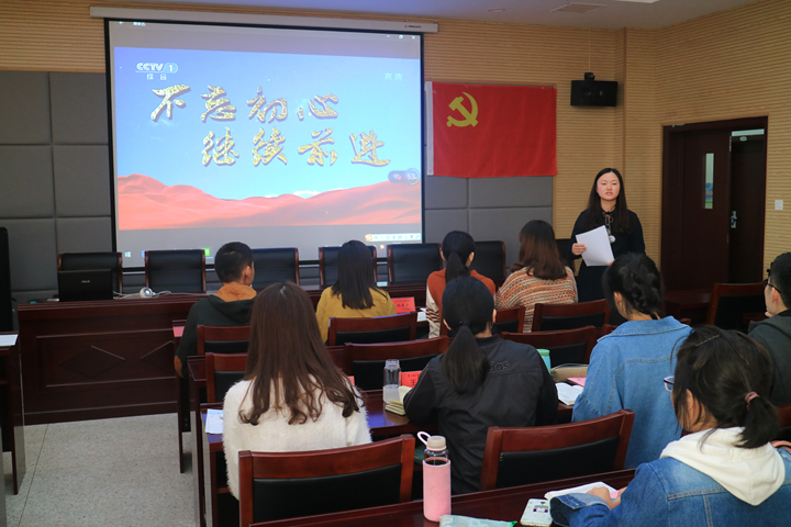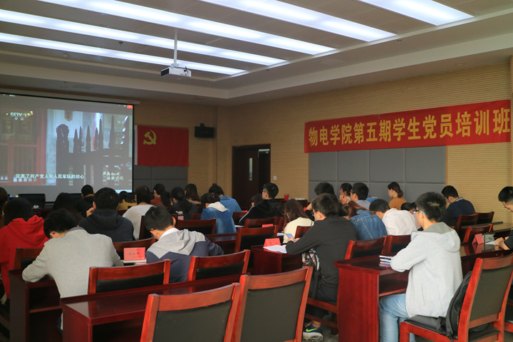 五期党员培训班开班典礼结束后,党校培训班开始第一次党课培训,党校班主任及全体学员观看教学视频《不忘初心继续前进--强军路上》。