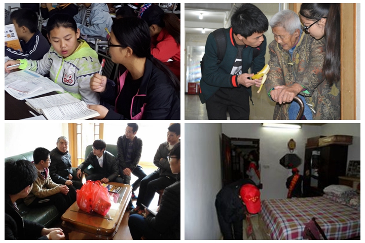 校园内,他们开展看望退休教职工、定时清理赭山校区田楼和教学楼卫生、定期宣传肺结核防治工作、督促学生学习等活动。校园外,他们利用专业知识,在石城社区等地开展义务维修活动等形式多样的义务维修活动,为困难中小学生免费补习功课,人均志愿服务10.2小时。15物理支亚亚在工作记录本中写道“我带的孩子是管海彬,是第27中学八年级的学生,为了给他上好课,我还自制了物理教具,这让我在服务别人中提升了自己创造能力”。