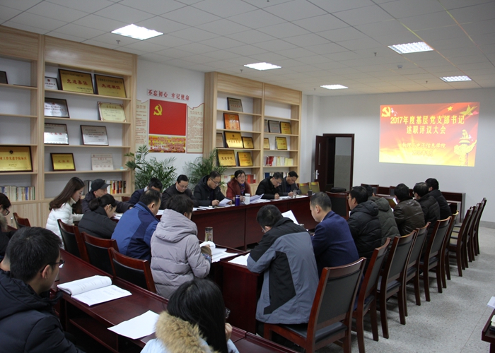 本网讯(图/米佳佳 文/王梦晓)元月4日下午,包子漫画 党委在实训大楼物理楼三楼党员活动室召开2017年度党支部书记抓党建工作述职评议会,学院党委委员、各党支部书记与支委参加会议。会议由学院党委书记李娟主持。