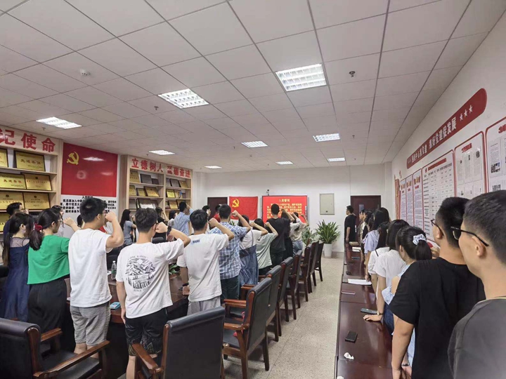最后,全体党员面向党旗,重温了入党誓词。