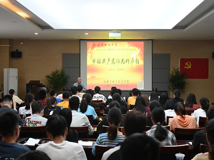 党委书记、分党校校长李娟,院关工委副主任、分党校指导老师陶绪德应邀于物理楼304为下半年入党积极分子培训班学员讲授中国共产党党员的权利与义务和中国共产党的光辉历史。