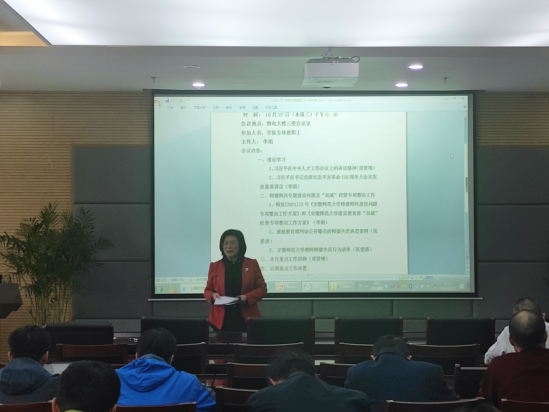 会上,院长郑贤锋带领学习习近平在中央人才工作会议上的讲话精神,要求教师们要认真学习贯彻,把会议精神转化为做好人才培养工作和自身发展的强大动力;李娟作专题辅导报告,从辛亥革命的贡献、历史意义、五个启示和台湾问题等方面对习近平总书记在纪念辛亥革命110周年大会上发表重要讲话进行了详细解读;张爱清副院长通报了教育部网站公开曝光的师德失范典型案例,并领学包子漫画