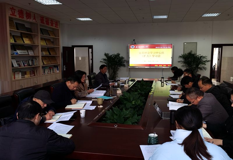 召开党委理论学习中心组(扩大)学习暨安全工作专题会。院党委书记李娟主持会议。院党委委员、班子成员、支部书记、辅导员、行政管理人员参加学习会。