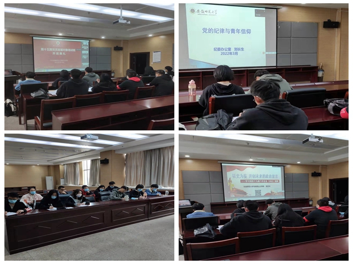 本期培训班采取线上专题辅导报告、线下视频教学、个人自学等方式,邀请马克思主义学院教授张正光、校党委宣传部副部长王少仁、马克思主义学院副院长李祥兴、校纪委办公室审查室主任刘长生等专家领导分别围绕《以史为鉴、开创未来的政治宣言——学习党的十九届六中全会精神》、《学习党的光辉历史 增强做中国人的骨气、志气、底气》、《党的纪律与青年信仰》、《不忘初心 牢记使命——中国共产党章程解读》等专题授课。在集中培训和个人自学的基础上,培训班还组织了视频教学,观看《中央党校党史公开课》、《榜样6》建党100周年等特别节目。整个培训班教学安排紧凑,组织管理规范,考勤考核严格,学风考风优良。通过集中教育培训,发展对象进一步端正了入党动机,进一步坚定了理想信念,进一步提升了政治理论素养,进一步强化了纪律意识,为在思想上和组织上入党奠定了坚实的基础。