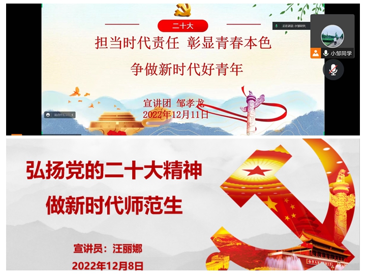 为进一步提升学生党员政治素养和理论水平,提升学生党员教育活力。本次培训班结合学院学习宣传贯彻党的二十大精神“理响物电”党的二十大精神师生宣讲团,在培训班开展了党的二十大精神宣讲活动,宣讲员们带来了题为《担当时代责任,彰显青春本色,争做新时代好青年》《弘扬党的二十大精神,做新时代师范生》等系列宣讲。宣讲员们娓娓道来,他们用“青言青语”宣传党的二十大精神、把大道理寓于小故事,将党的二十大精神原原本本传递给每一位学员。