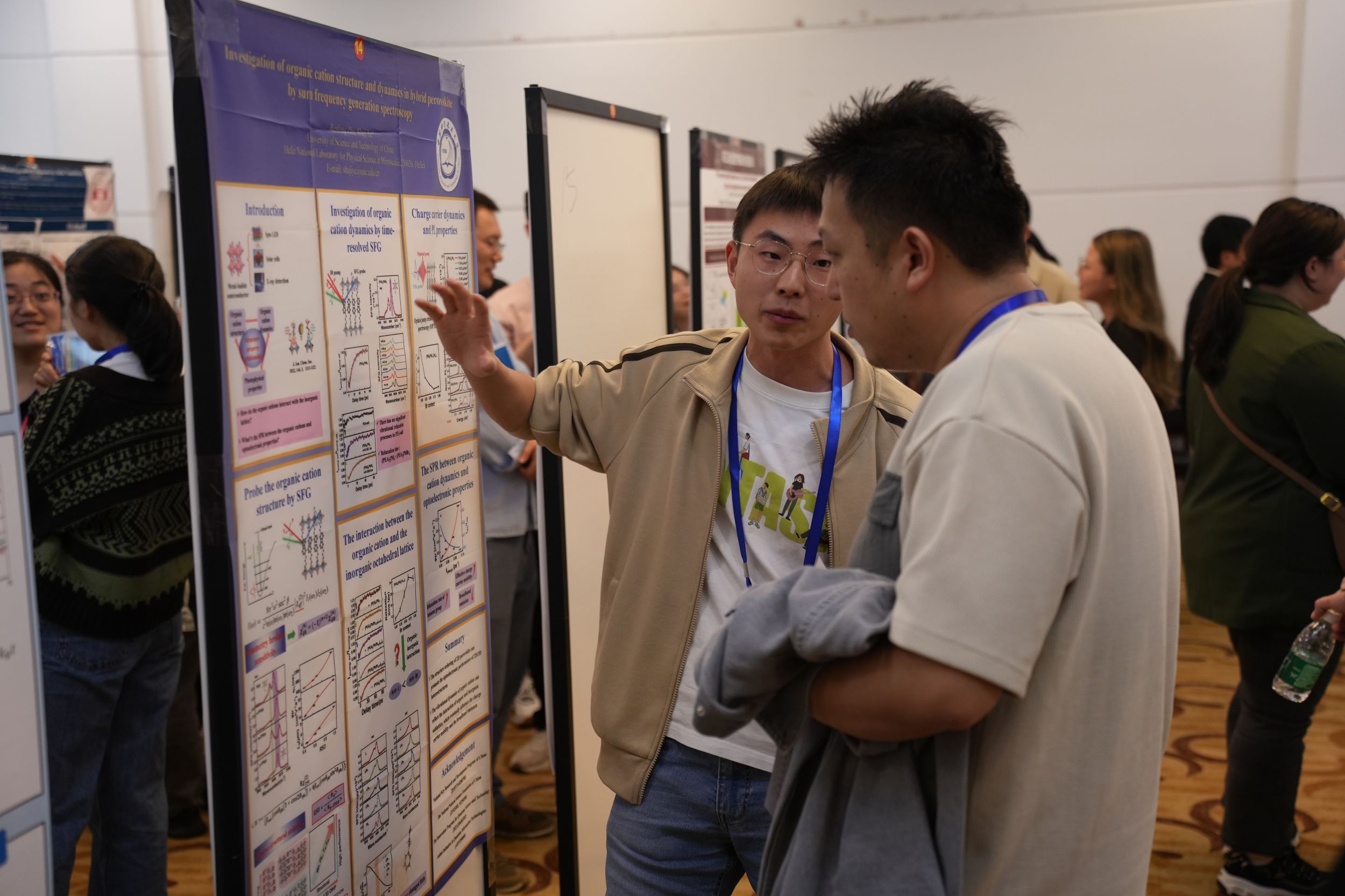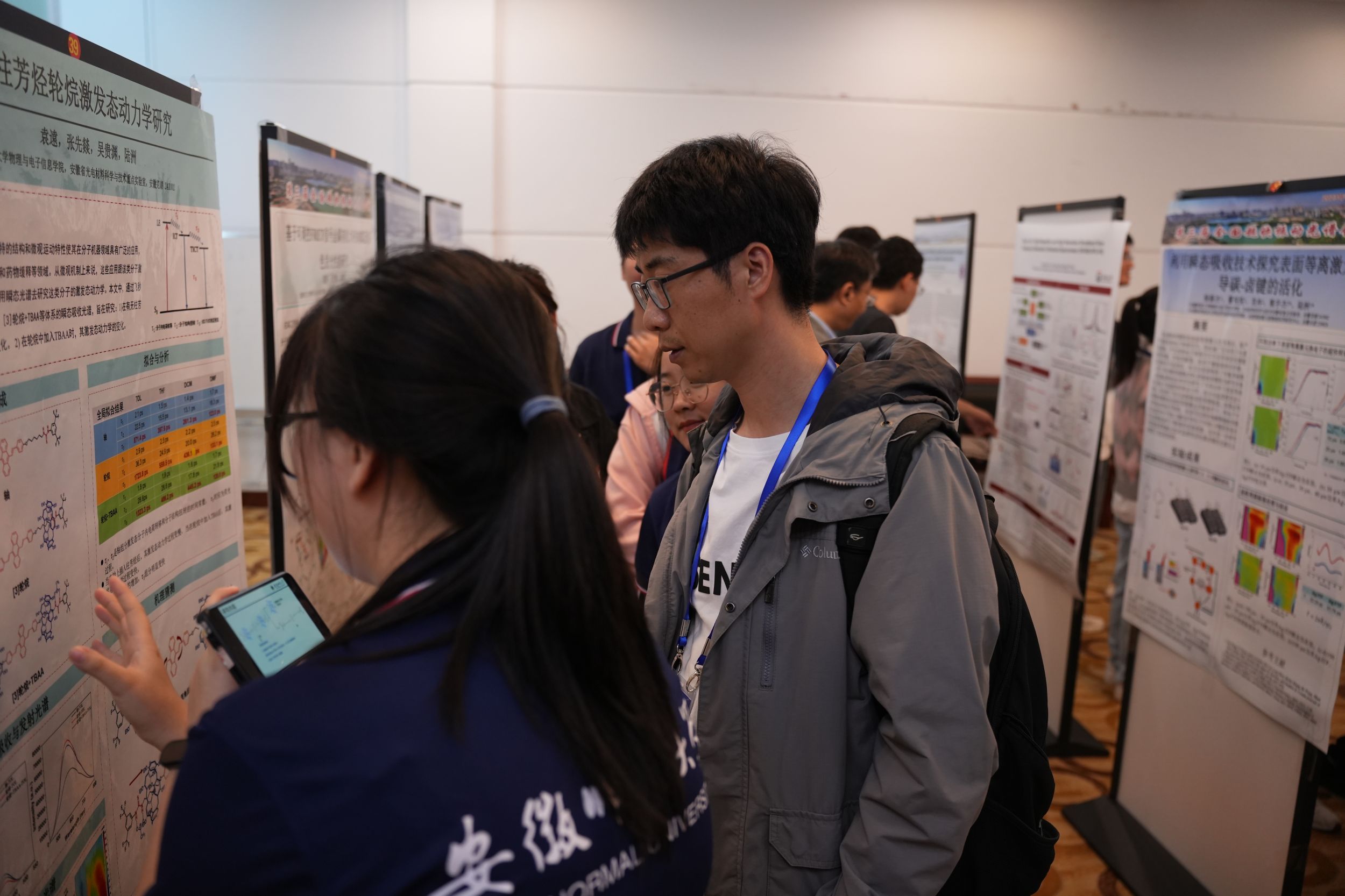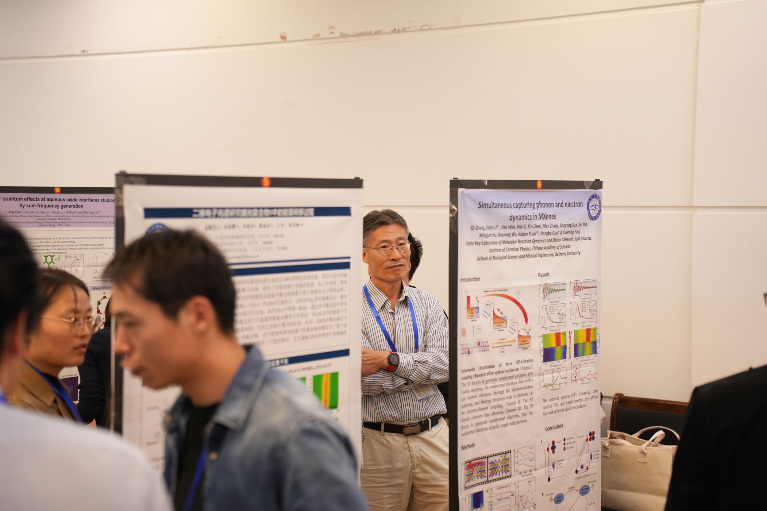 开幕式后,北京大学盖锋教授、西湖大学王鸿飞教授、山东大学步宇翔教授分别以“蛋白动力学位点特异性评估的线性与非线性红外光谱研究”“高重频高分辨非线性振动光谱”“二氧化碳液相还原与预溶解电子超快相互作用动力学的从头算分子动力学研究”为题作了大会主旨报告。随后,43位专家围绕着飞秒时间分辨与多维红外光谱、和频振动光谱、非线性拉曼光谱、时域太赫兹光谱、红外与太赫兹光源、超快振动光谱理论等专题作了精彩的学术报告。与会的其它专家、博士后、研究生以墙报形式分享了他们的最新研究进展。经专家投票,会议评选出了14个最佳墙报展示奖。