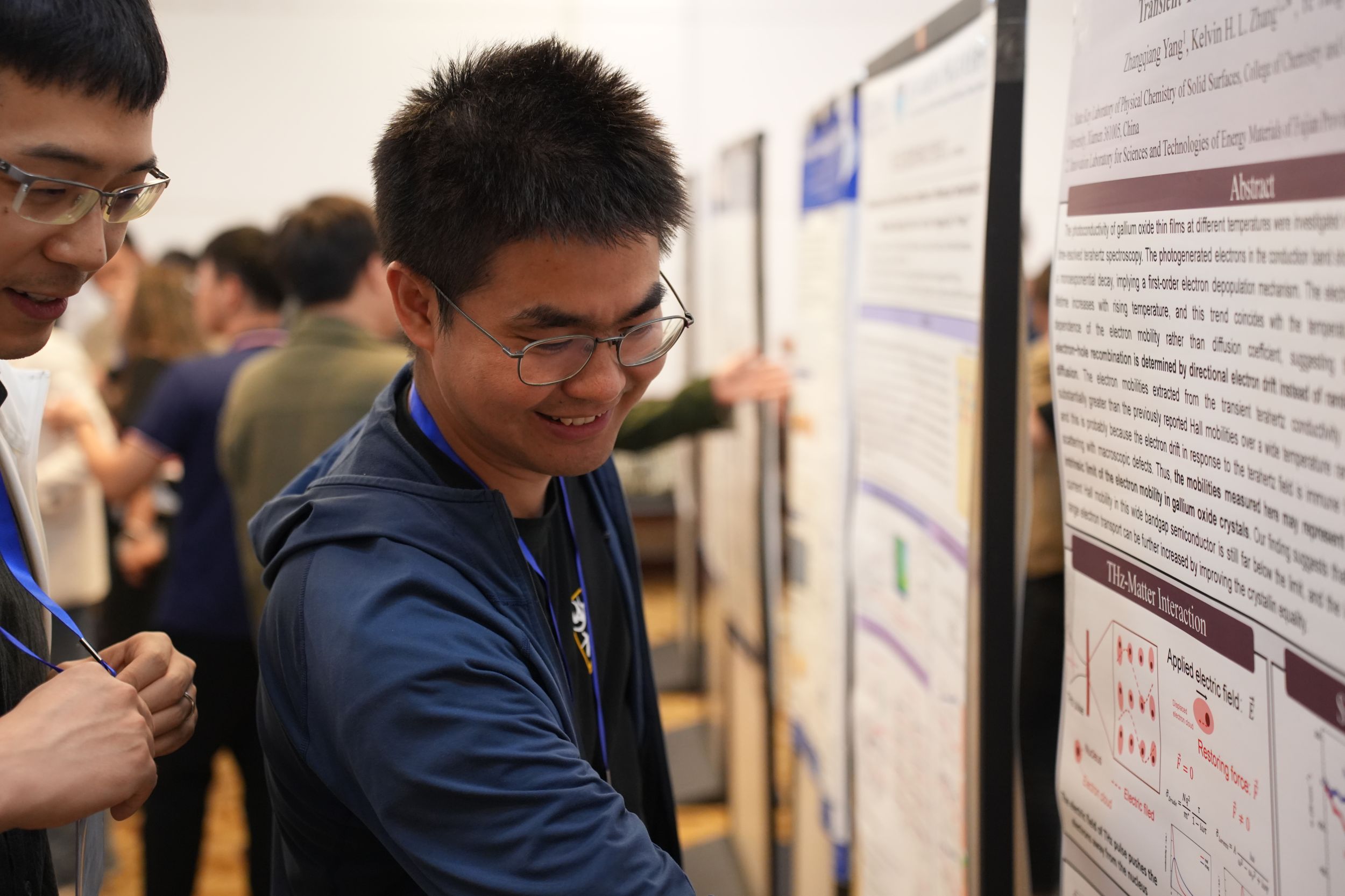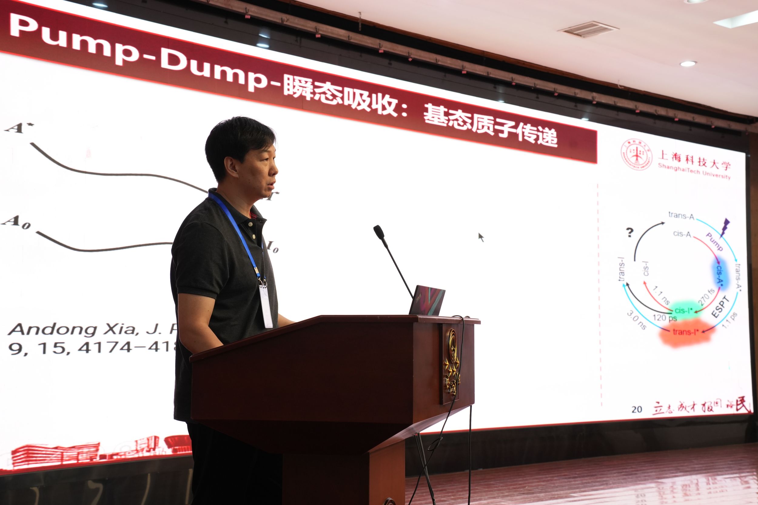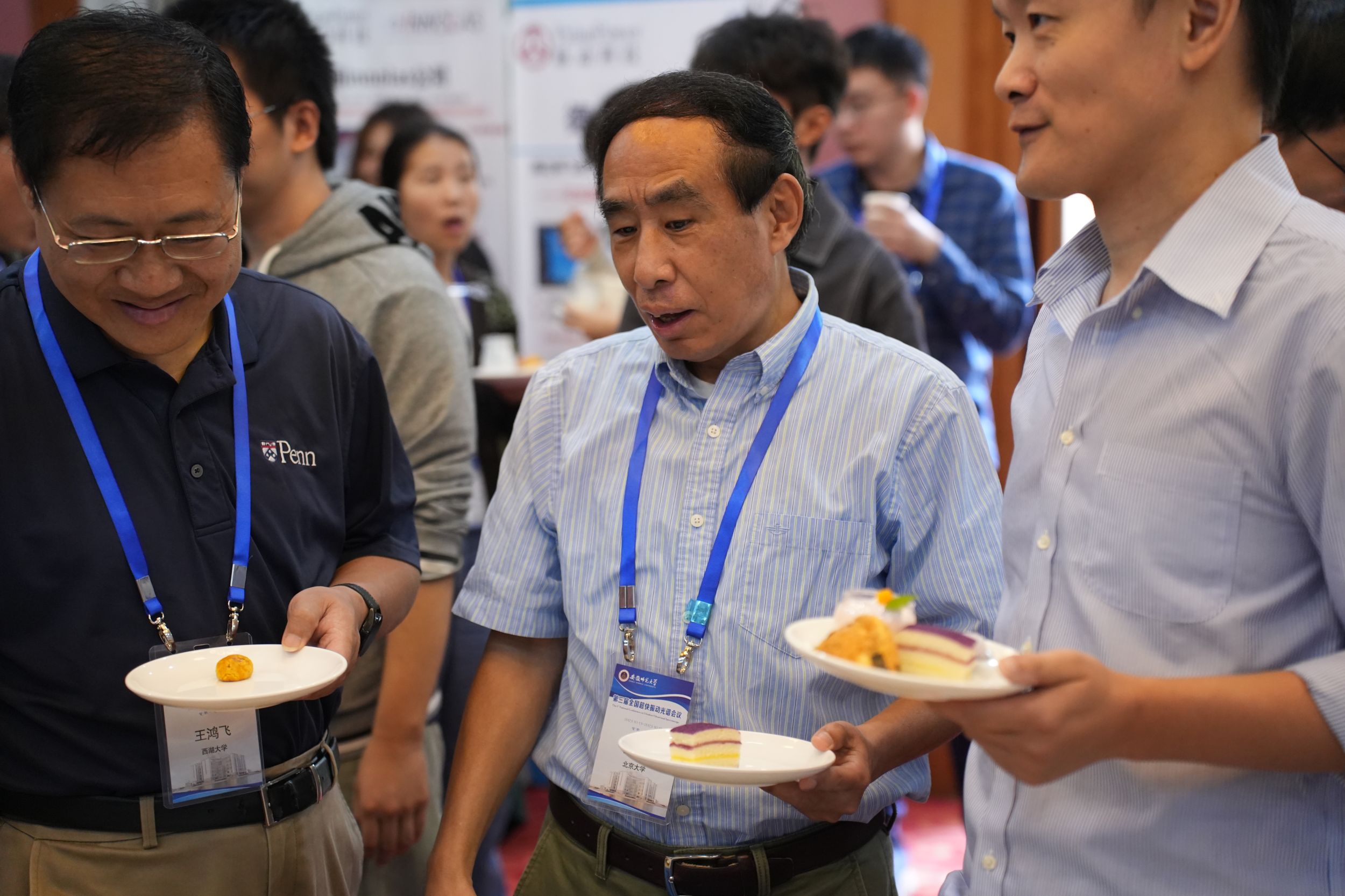 开幕式后,北京大学盖锋教授、西湖大学王鸿飞教授、山东大学步宇翔教授分别以“蛋白动力学位点特异性评估的线性与非线性红外光谱研究”“高重频高分辨非线性振动光谱”“二氧化碳液相还原与预溶解电子超快相互作用动力学的从头算分子动力学研究”为题作了大会主旨报告。随后,43位专家围绕着飞秒时间分辨与多维红外光谱、和频振动光谱、非线性拉曼光谱、时域太赫兹光谱、红外与太赫兹光源、超快振动光谱理论等专题作了精彩的学术报告。与会的其它专家、博士后、研究生以墙报形式分享了他们的最新研究进展。经专家投票,会议评选出了14个最佳墙报展示奖。