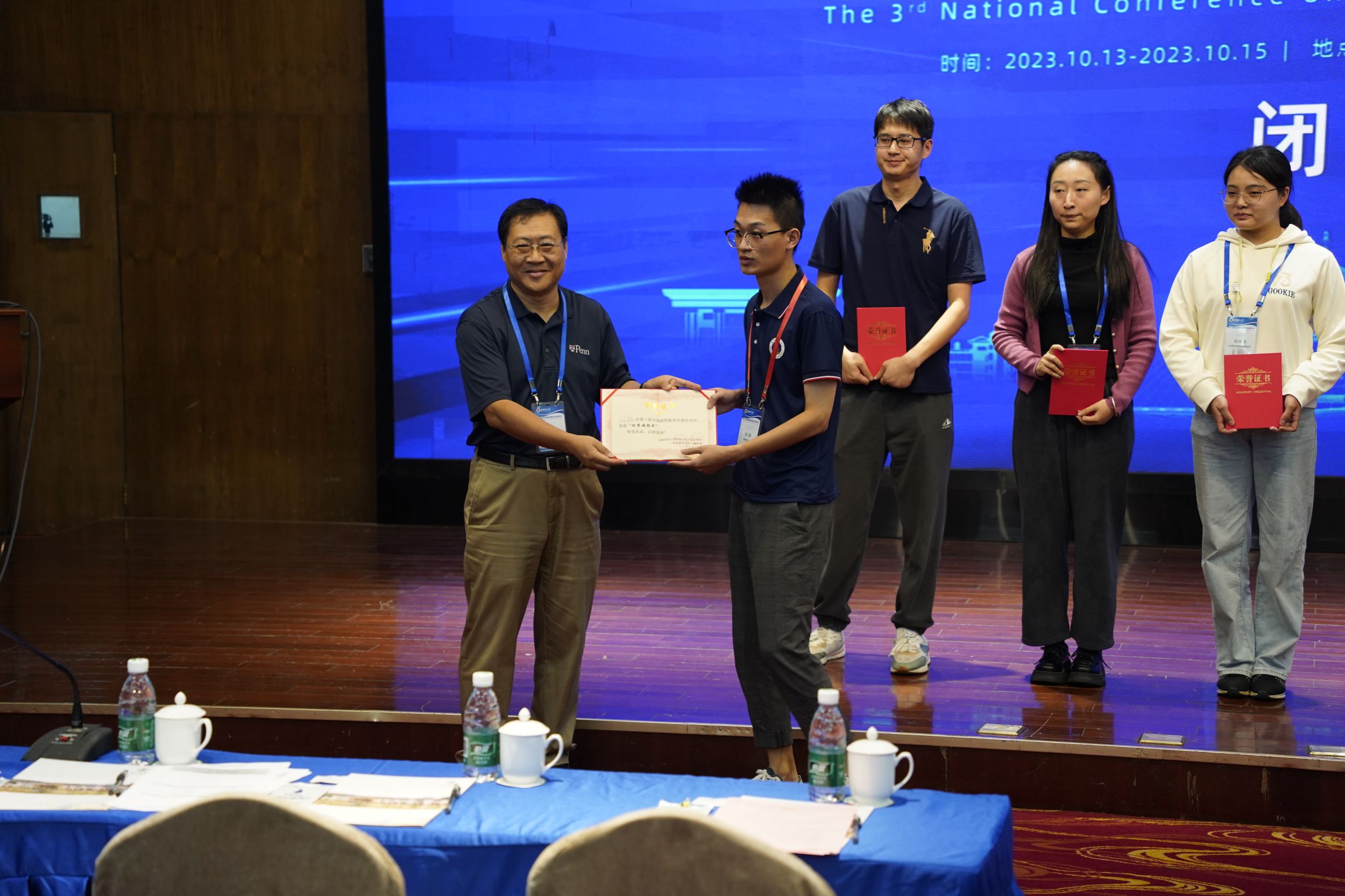 课题组全体同学日前参加了在安徽芜湖举行的"第三届全国超快振动光谱会议",总计有11位同学在会议上以墙报形式向与会代表分享了他们的最新研究成果。在2023年10月15日举行的会议闭幕式上,我组二年级博士生刘榕同学提交的《联吡啶金属配合物功能化氮杂环卡宾金纳米团簇的簇内超快电荷转移》荣获了最佳墙报表达奖。