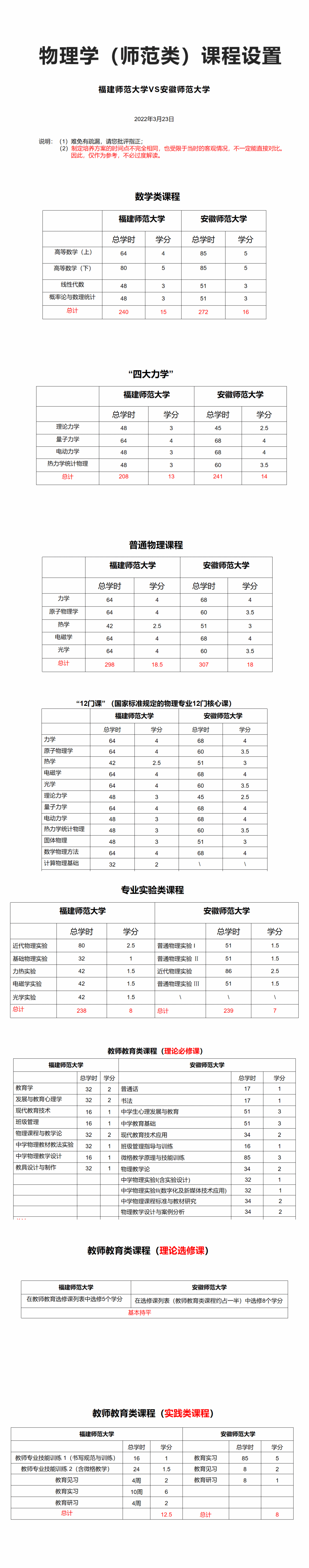 2.1福建师范大学与包子漫画 物理(师范)培养方案对比