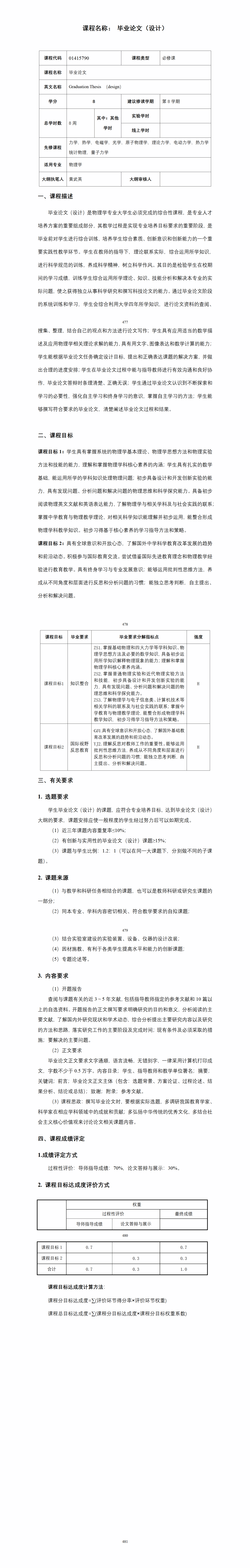 毕业论文的教学大纲